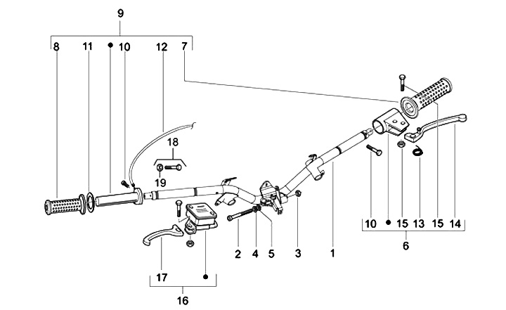 Handlebar -PIAGGIO- Piaggio TPH 125 (LBMM70100), Piaggio TPH 50 (LBMC50100, LBMC50101), Aprilia Sport City One 125 (ZD4SG000, ZD4SG, ZD4SGC00), Aprilia Sport City One 50 (ZD4SB000, ZD4SBA00, ZD4SBC00, ZD4SBE00, ZD4SBB00), Aprilia SR Motard 125 (LBMM70300)
