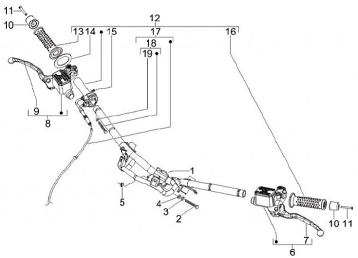 Handlebar -PIAGGIO- Gilera Runner 125 (ZAPM24200, ZAPM24100, ZAPM46100, ZAPM24000, ZAPM07000, ZAPM46300, ZAPM46301), Gilera Runner 180 (ZAPM08000), Gilera Runner 200 (ZAPM24300, ZAPM46200, ZAPM46400, ZAPM46401), Gilera Runner 50 (ZAPC46100, ZAPC46200, ZAP