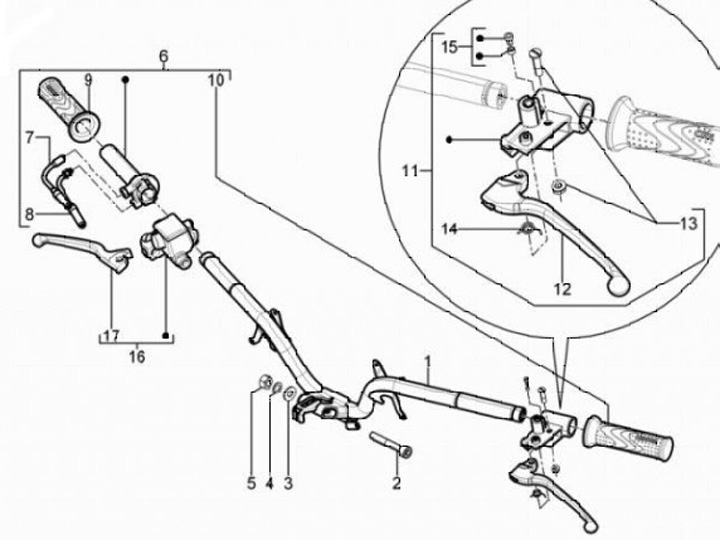 Handlebar -PIAGGIO- Piaggio TPH 125 (LBMM70100), Piaggio TPH 50 (LBMC50100, LBMC50101), Aprilia Sport City One 125 (ZD4SG000, ZD4SG, ZD4SGC00), Aprilia Sport City One 50 (ZD4SB000, ZD4SBA00, ZD4SBC00, ZD4SBE00, ZD4SBB00), Aprilia SR Motard 125 (LBMM70300)