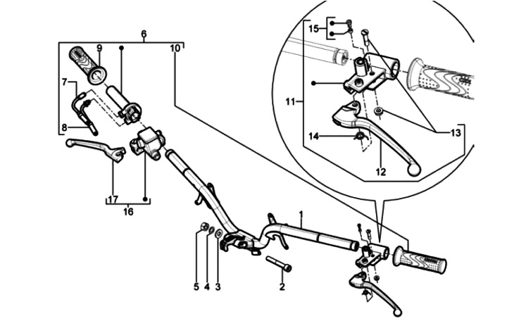 Handlebar -PIAGGIO- Piaggio TPH 125 (LBMM70100), Piaggio TPH 50 (LBMC50100, LBMC50101), Aprilia Sport City One 125 (ZD4SG000, ZD4SG, ZD4SGC00), Aprilia Sport City One 50 (ZD4SB000, ZD4SBA00, ZD4SBC00, ZD4SBE00, ZD4SBB00), Aprilia SR Motard 125 (LBMM70300)