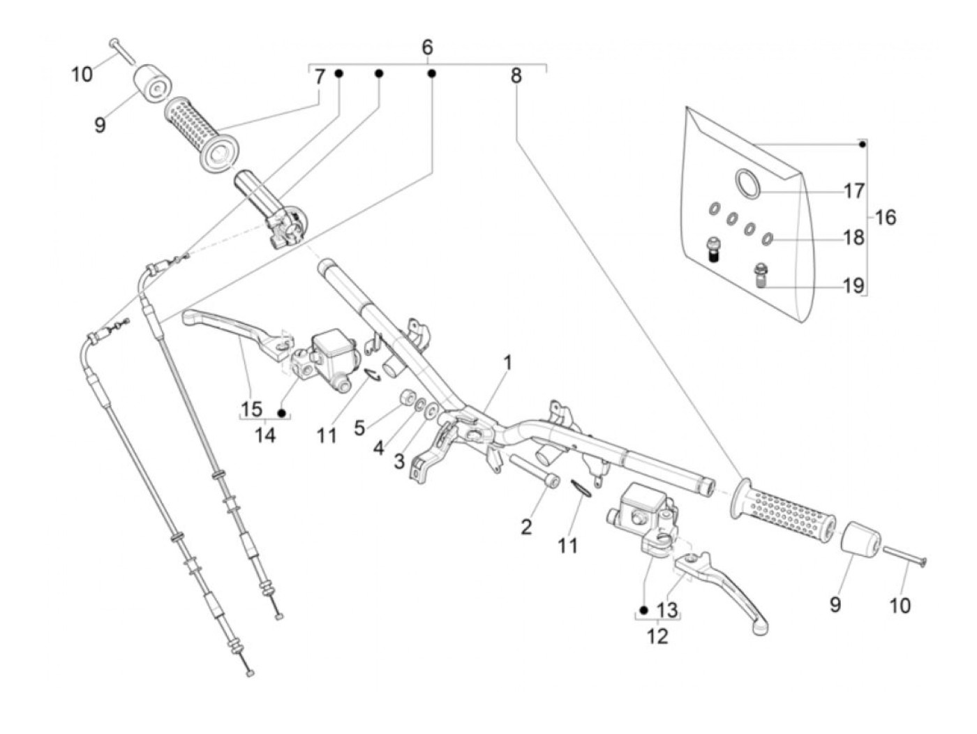 Handlebar -PIAGGIO- Vespa GTS 125 (ZAPMA3700), Vespa GTS HPE 300 (ZAPMA3600, ZAPMD310), Vespa GTS Super 125 (ZAPMA3700), Vespa GTS Super HPE 300 (ZAPMA360, ZAPMD3100)