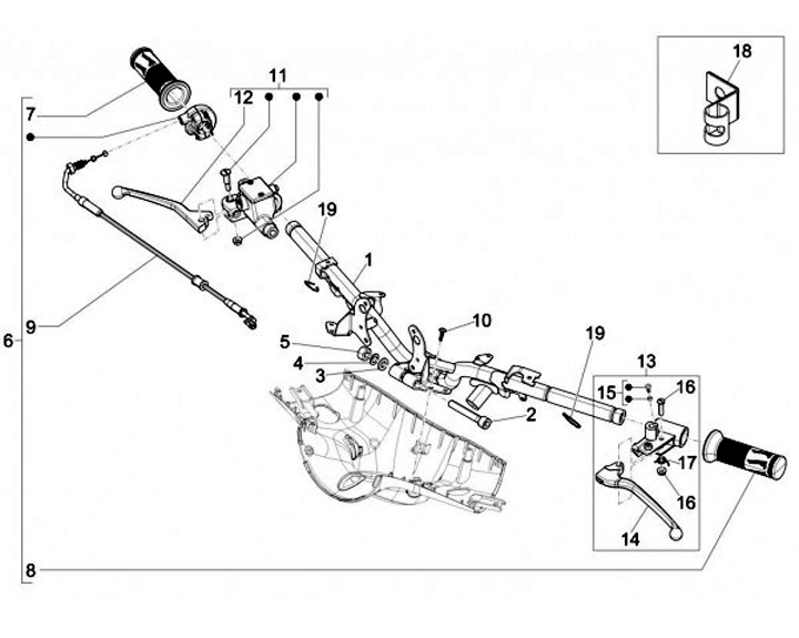 Handlebar -PIAGGIO- Vespa Primavera 125 (ZAPM81100, ZAPM81101, ZAPMA1100, RP8M82500, RP8M82821, RP8M82100, RP8M82310, ZAPMA1101, ZAPMD1100), Vespa Primavera 150 (ZAPM81200, ZAPMA1200, ZAPM81201, ZAPMA1201, ZAPMD120), Vespa Primavera 50 (ZAPC53200, ZAPC531