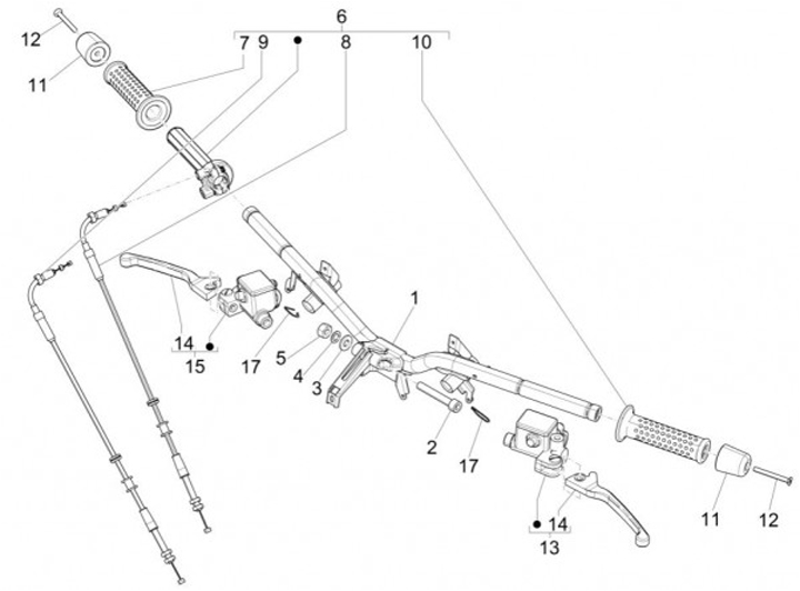 Throttle grip and throttle cables -PIAGGIO- Vespa GTS 250 (ZAPM45100), Vespa GTS 300 (ZAPM45200, ZAPM45202), Vespa GTS Super 125 (ZAPM45300, ZAPM45301), Vespa GTS Super 300 (ZAPM45200, ZAPM45202)