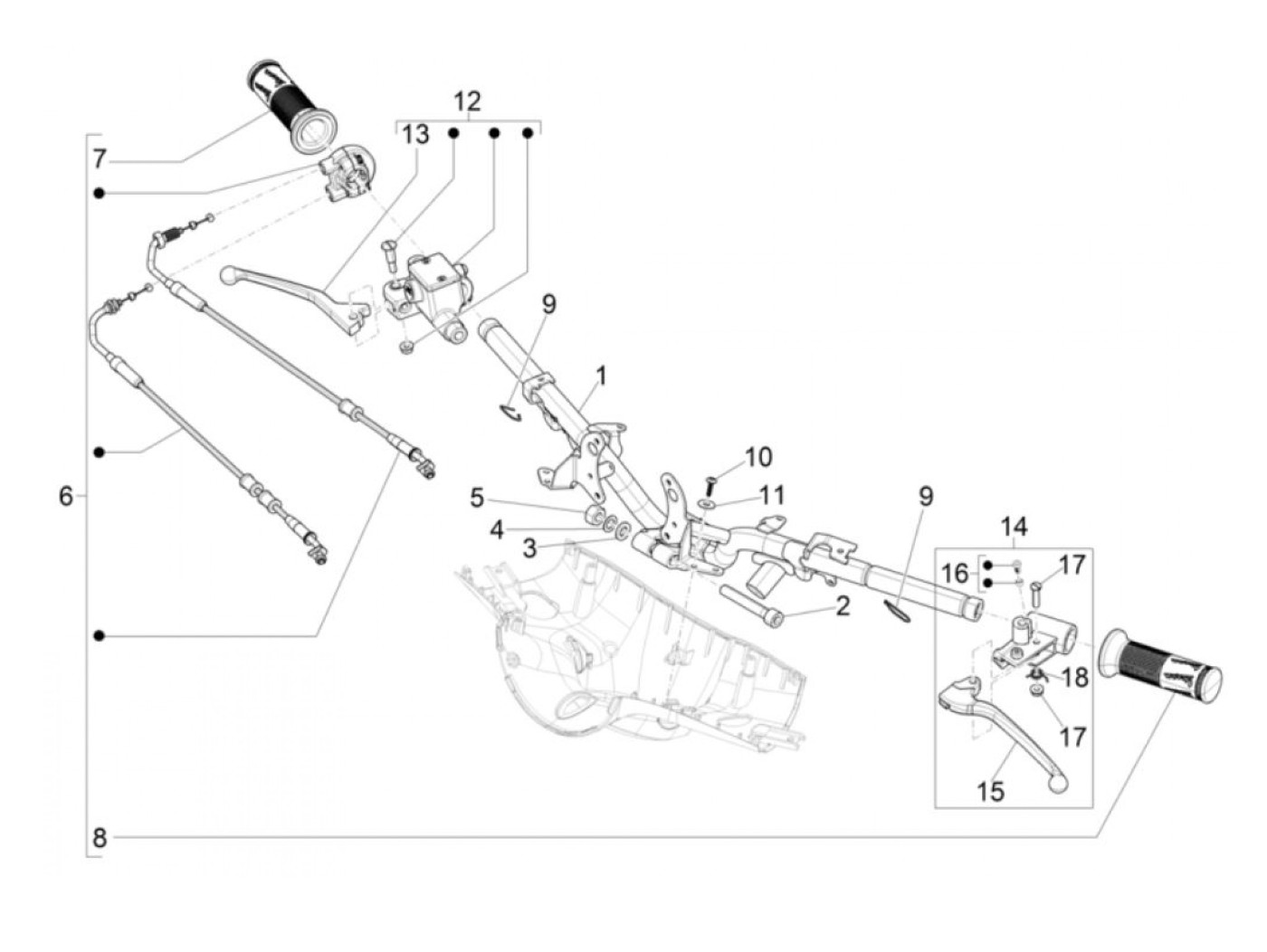 Handlebar -PIAGGIO- Vespa Primavera 125 (ZAPM81100, ZAPM81101, ZAPMA1100, RP8M82500, RP8M82821, RP8M82100, RP8M82310, ZAPMA1101, ZAPMD1100), Vespa Primavera 150 (ZAPM81200, ZAPMA1200, ZAPM81201, ZAPMA1201, ZAPMD120), Vespa Primavera 50 (ZAPC53200, ZAPC531