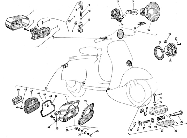 Light switch -OEM QUALITY- Vespa V90, SS90 (Italian models), VNB2T-VNB6T, Super, GT125 (VNL2T), GTR125 (VNL2T), Nuova 125, PV125, VBB2T, Sprint150 (VLB1T), SS180 (VSC1T) (models without battery), Rally180 (VSD1T)