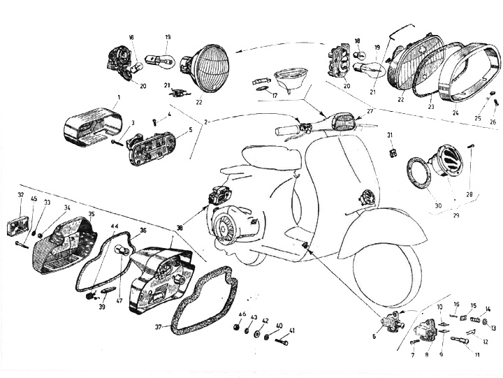 Light switch -OEM QUALITY- Vespa V90, SS90 (Italian models), VNB2T-VNB6T, Super, GT125 (VNL2T), GTR125 (VNL2T), Nuova 125, PV125, VBB2T, Sprint150 (VLB1T), SS180 (VSC1T) (models without battery), Rally180 (VSD1T)