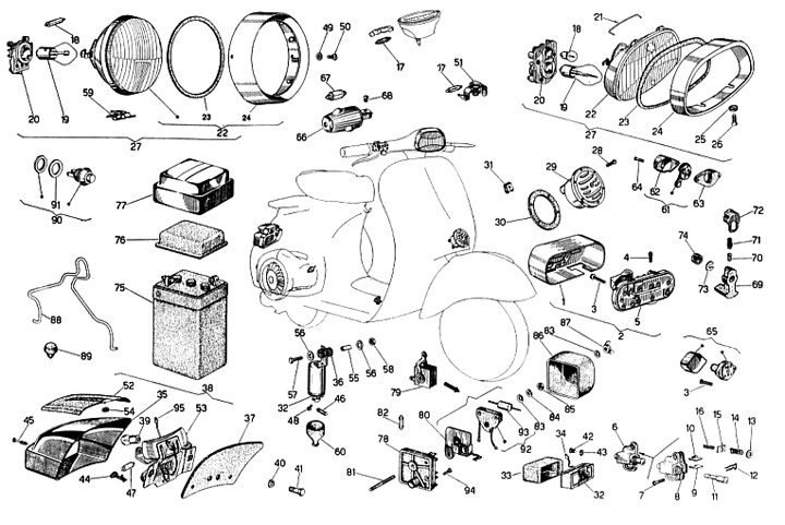 Light switch -OEM QUALITY- Vespa V90, SS90 (Italian models), VNB2T-VNB6T, Super, GT125 (VNL2T), GTR125 (VNL2T), Nuova 125, PV125, VBB2T, Sprint150 (VLB1T), SS180 (VSC1T) (models without battery), Rally180 (VSD1T)