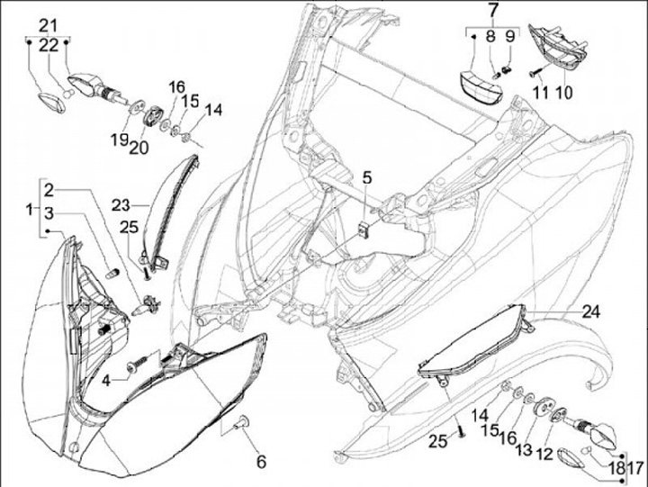 Indicator -PIAGGIO- Gilera Fuoco 500, GP 800, Piaggio MP3 250-500, Aprilia SRV 850 - white - front lhs/rear rhs
