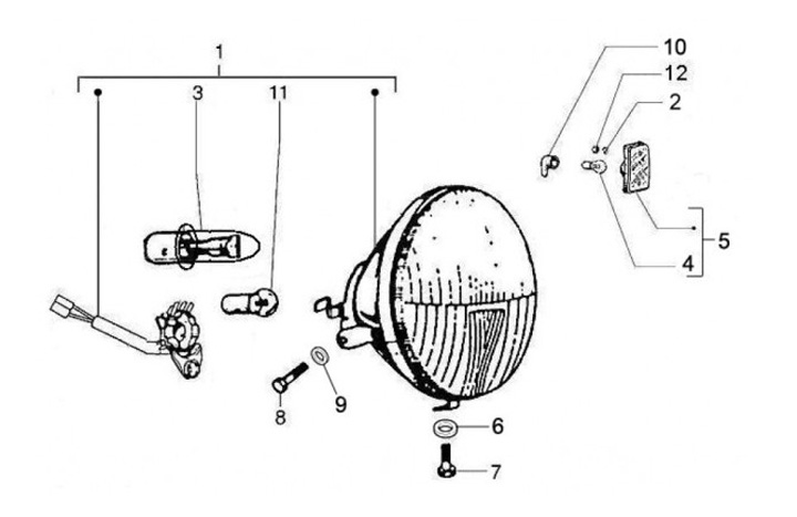 Headlight -PIAGGIO Ø=146mm- Vespa PX EFL - H4, clear glass, right hand traffic
