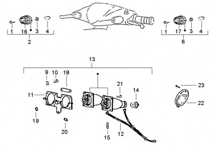 Indicator -PIAGGIO- Typhoon 50-125, NRG 50, NTT 50, Zip 50 Fast Rider, Zip 50 SP, Gilera Storm 50 - amber - front rhs