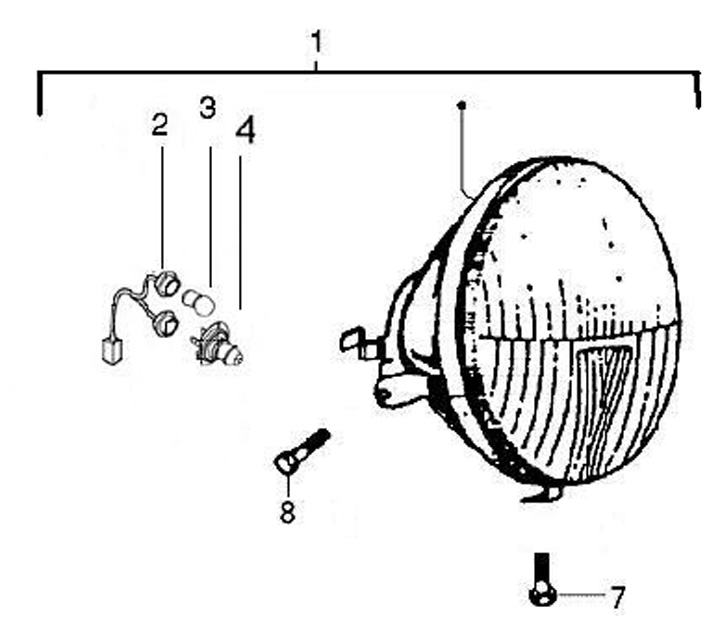 Headlight -PIAGGIO Ø=146mm- Vespa PX EFL - H4, clear glass, right hand traffic