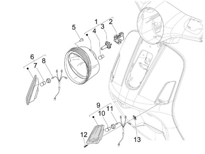 Headlamp, without parking light, left-hand traffic -PIAGGIO- Vespa GTS 150 (ZAPMA3200, ZAPMA3100), Vespa GTS 250 (ZAPM45100), Vespa GTS Super 125 (ZAPM45300, ZAPMA3100, ZAPMA3200, ZAPM45301), Vespa GTS Super 300 (ZAPM45200, ZAPM45202, ZAPMA3300)