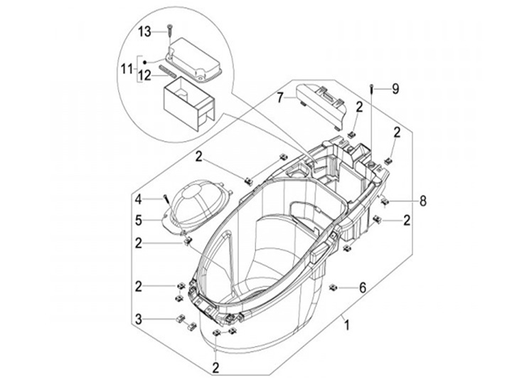 Helmet box -PIAGGIO- Piaggio NRG 50 (ZAPC45300, ZAPC45200, ZAPC45100, ZAPCA7100, ZAPC36200)