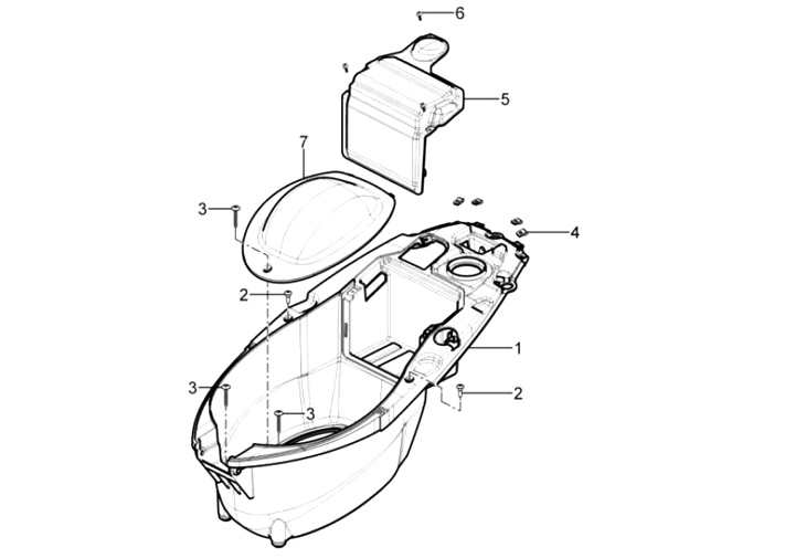 Helmet box -PIAGGIO- Aprilia Sport City One 125 (ZD4SG000, ZD4SG, ZD4SGC00), Aprilia Sport City One 50 (ZD4SB000, ZD4SBA00, ZD4SBC00, ZD4SBE00, ZD4SBB00), Aprilia SR Motard 125 (LBMM70300), Aprilia SR Motard 50 (LBMC50200, LBMC50201, ZD4CS5), Piaggio TPH
