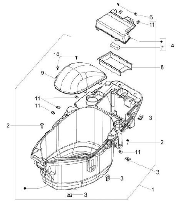 Helmet box -PIAGGIO- Piaggio Zip II 100 (LBMM25200), Piaggio Zip II 125 (ZAPM25000), Piaggio Zip II 50 (ZAPC25000, LBMC25C, LBMC25E, LBMC25C00, LBMC25D0), Piaggio Zip II SP 50 (ZAPC25000, ZAPC25600), Piaggio Zip SP 50 (ZAPC11000)