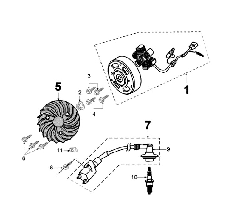 Ignition -RMS stator- Peugeot 50 cc (horizontal, without immobiliser) - JETFORCE50 C-TECH, SPEEDFIGHT3 50 LC, LUDIX 50 LC BLASTER, SPEEDFIGHT3 50 cc AC (2T), LUDIX AC, VIVACITY 50 NEW (2T)
