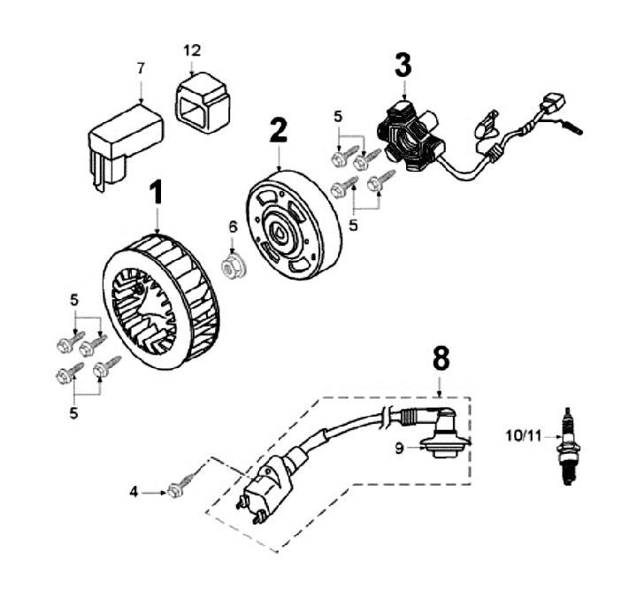 Ignition -OEM QUALITY stator- Peugeot 50-100 cc (models without immobiliser) - SPEEDFIGHT1 50 cc, SPEEDFIGHT2 50 cc, XFIGHT50, BUXY50, ELYSEO50, ELYSTAR50, LOOXOR50, METALX50, SPEEDAKE, SQUAB50, SV50, TKR50, TREKKER50, VIVACITY50, ZENITH50