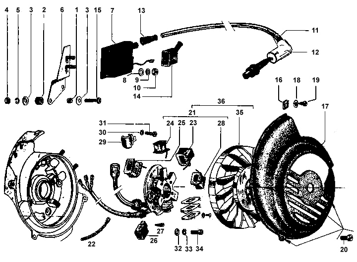 Ignition -PIAGGIO stator- Vespa PK XL, Ape 50 - 5 coils, 6-cable (round plug with 3-pin) - for vehicles without battery