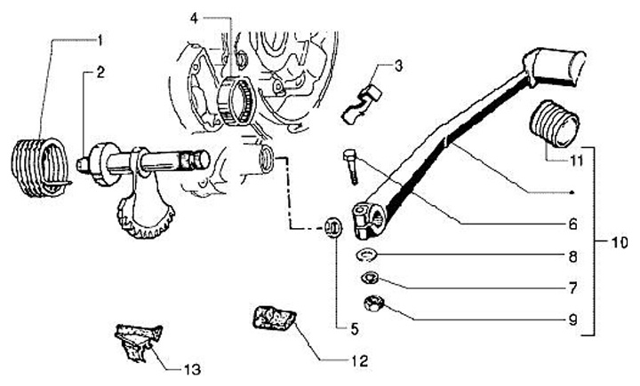 Kickstart spring -PIAGGIO- Vespa PX, T5 125cc, Cosa, Rally180 (VSD1T), Rally200 (VSE1T), Sprint150 (VLB1T), TS125 (VNL3T), GT125 (VNL2T), GTR125 (VNL2T), Super, GS160 / GS4 (VSB1T), SS180 (VSC1T), GL150 (VLA1T), VNA, VNB, VBA, VBB