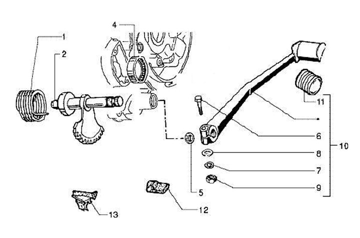 Kickstart spring -PIAGGIO- Vespa PX, T5 125cc, Cosa, Rally180 (VSD1T), Rally200 (VSE1T), Sprint150 (VLB1T), TS125 (VNL3T), GT125 (VNL2T), GTR125 (VNL2T), Super, GS160 / GS4 (VSB1T), SS180 (VSC1T), GL150 (VLA1T), VNA, VNB, VBA, VBB