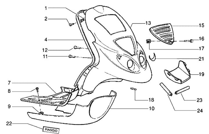 Underbody -PIAGGIO- NRG (ZAPC18), NRG Extreme (ZAPC21, ZAPC22), NRG MC2 (ZAPC04), NRG MC3 (ZAPC21, ZAPC32)
