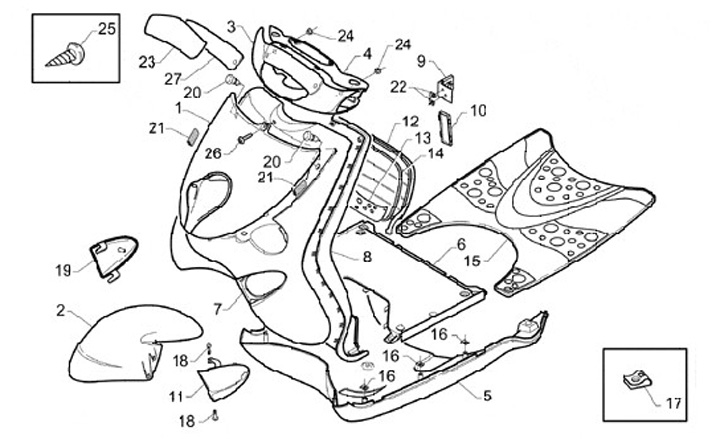 Threaded bush for cockpit windscreen -PIAGGIO- Gilera DNA, Runner (2006-), Piaggio NRG Extreme, NRG MC3, NRG Power