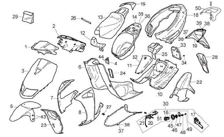 Lock set -OEM QUALITY- Aprilia SR AC/LC (-1999), Aprilia Rally AC/LC