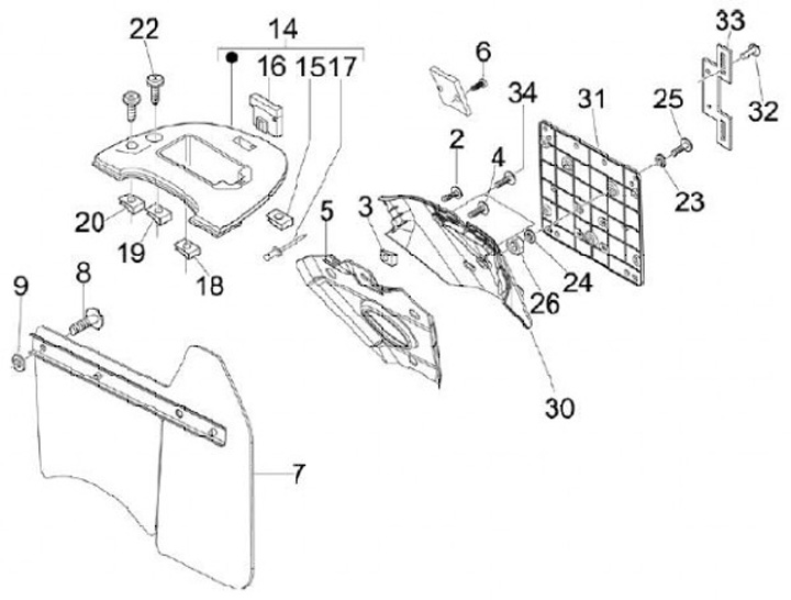 Helmet box rear cover -PIAGGIO- Vespa ET4 (ZAPM04, ZAPM19, ZAPC26), Vespa LX (ZAPC38, ZAPM44,ZAPM68), Vespa LXV (ZAPC38, ZAPM44,ZAPM68), Vespa S (ZAPC38, ZAPM44,ZAPM68)