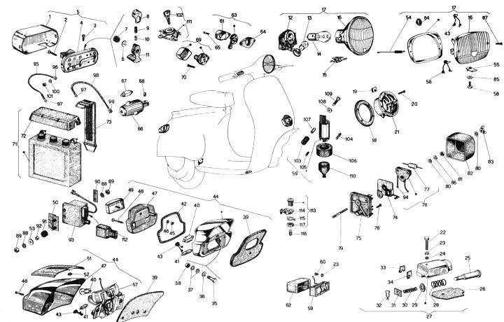 Taillight -SIEM- PV125 (VMA2T, 140162-), ET3 (VMB1T), P125 ETS (PK, VMS1T), 50 Sprinter (V5SS2T, 10480- Germany), 50 Special (V5B3T, 185179-), V50 S (V5SA1, 69245-), V90 (V9A1T, 141544-), 50R (V5A1T 910209- England, 891756- France), Motovespa 75 PR (Motor