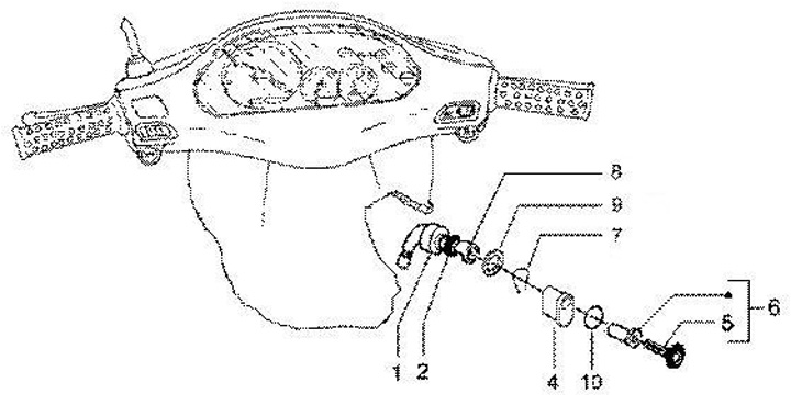 On-Off lock body -PIAGGIO- Vespa GT 250 (ZAPM45102), Vespa GT L 125 (ZAPM31100, ZAPM31101), Vespa GT L 200 (ZAPM31200), Vespa GTS 125 (ZAPM31300), Vespa GTS 250 (ZAPM45100, ZAPM45101), Vespa GTS 300 (ZAPM45200, ZAPM45202), Vespa GTS Super 125 (ZAPM45300,