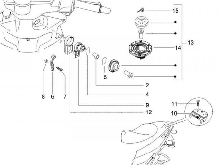 Ignition switch -PIAGGIO- Gilera ICE, Runner50-200, Piaggio Fly, Hexagon GT-GTX, Hexagon LX-LXT, Liberty, NRG Power, Skipper, X7, X9, Zip (since 2000), Vespa ET2, ET4, LX, LXV, S
