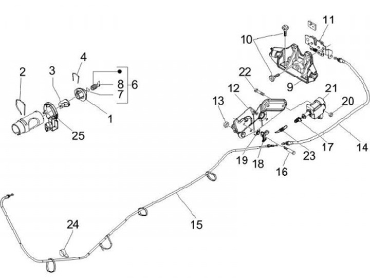 Seat lock -PIAGGIO- Vespa GT 250 (ZAPM45102), Vespa GT L 125 (ZAPM31100, ZAPM31101), Vespa GT L 200 (ZAPM31200), Vespa GTS 125 (ZAPM31300, ZAPMA3100, ZAPMA3200, ZAPMA3700), Vespa GTS 150 (ZAPMA3200, ZAPMA3100), Vespa GTS 250 (ZAPM45100, ZAPM45101), Vespa