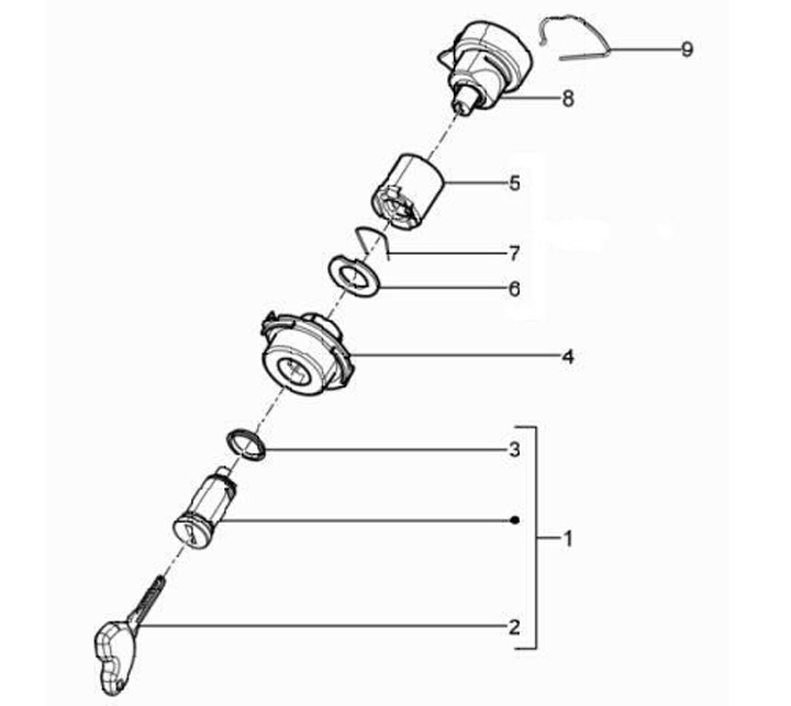 Ignition switch -PIAGGIO- Gilera ICE, Runner50-200, Piaggio Fly, Hexagon GT-GTX, Hexagon LX-LXT, Liberty, NRG Power, Skipper, X7, X9, Zip (since 2000), Vespa ET2, ET4, LX, LXV, S