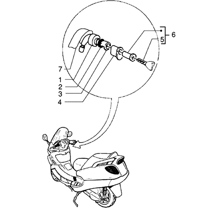 Ignition switch -PIAGGIO- Gilera ICE, Runner50-200, Piaggio Fly, Hexagon GT-GTX, Hexagon LX-LXT, Liberty, NRG Power, Skipper, X7, X9, Zip (since 2000), Vespa ET2, ET4, LX, LXV, S