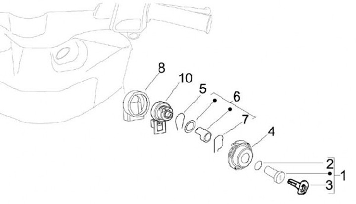 On-Off lock body -PIAGGIO- Vespa GT 250 (ZAPM45102), Vespa GT L 125 (ZAPM31100, ZAPM31101), Vespa GT L 200 (ZAPM31200), Vespa GTS 125 (ZAPM31300), Vespa GTS 250 (ZAPM45100, ZAPM45101), Vespa GTS 300 (ZAPM45200, ZAPM45202), Vespa GTS Super 125 (ZAPM45300,