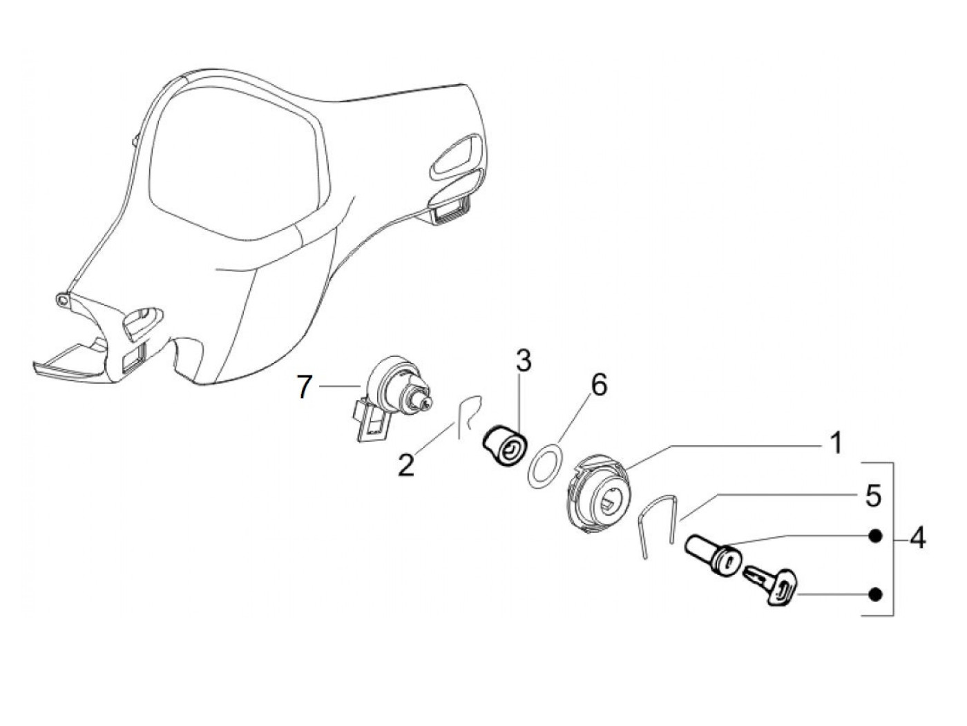 On-Off lock body -PIAGGIO- Vespa GT 250 (ZAPM45102), Vespa GT L 125 (ZAPM31100, ZAPM31101), Vespa GT L 200 (ZAPM31200), Vespa GTS 125 (ZAPM31300), Vespa GTS 250 (ZAPM45100, ZAPM45101), Vespa GTS 300 (ZAPM45200, ZAPM45202), Vespa GTS Super 125 (ZAPM45300,