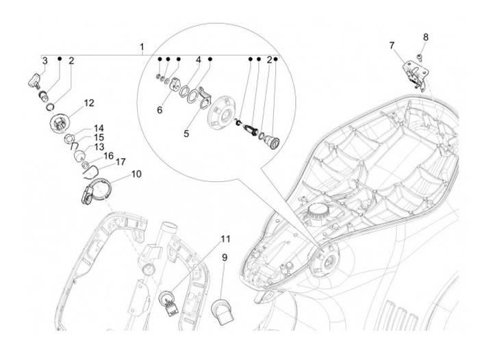 Ignition switch grommet -PIAGGIO- Vespa GT 250 (ZAPM45102), Vespa GT L 125 (ZAPM31101), Vespa GTS 125 (ZAPM31300), Vespa GTS 250 (ZAPM45100, ZAPM45101), Vespa GTS 300 (ZAPM45200, ZAPM45202), Vespa GTS Super 125 (ZAPM45300, ZAPM45301), Vespa GTS Super 300