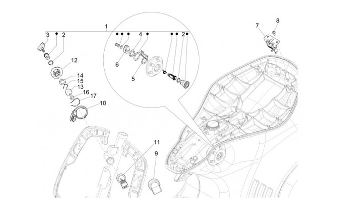 Ignition switch grommet -PIAGGIO- Vespa GT 250 (ZAPM45102), Vespa GT L 125 (ZAPM31101), Vespa GTS 125 (ZAPM31300), Vespa GTS 250 (ZAPM45100, ZAPM45101), Vespa GTS 300 (ZAPM45200, ZAPM45202), Vespa GTS Super 125 (ZAPM45300, ZAPM45301), Vespa GTS Super 300