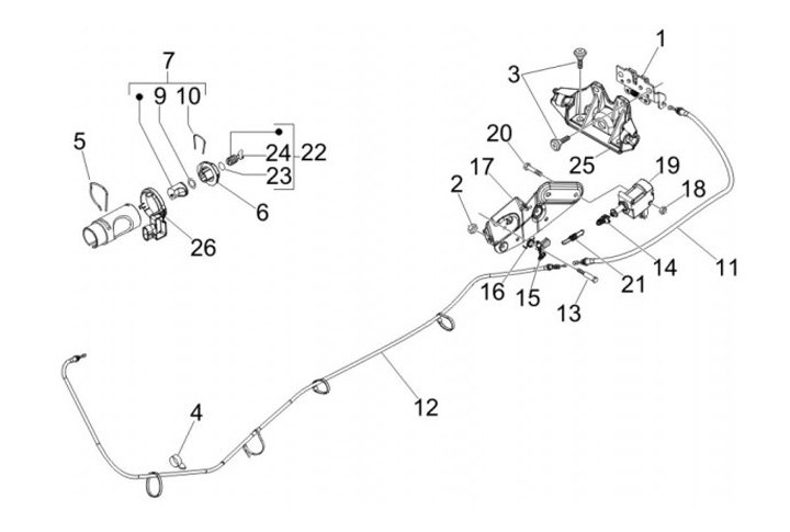 Cable (short) for seat lock -PIAGGIO- Vespa GT 250 (ZAPM45102), Vespa GT L 125 (ZAPM31100, ZAPM31101), Vespa GT L 200 (ZAPM31200), Vespa GTS 125 (ZAPM31300, ZAPMA3100, ZAPMA3200, ZAPMA3700), Vespa GTS 150 (ZAPMA3200, ZAPMA3100), Vespa GTS 250 (ZAPM45100,