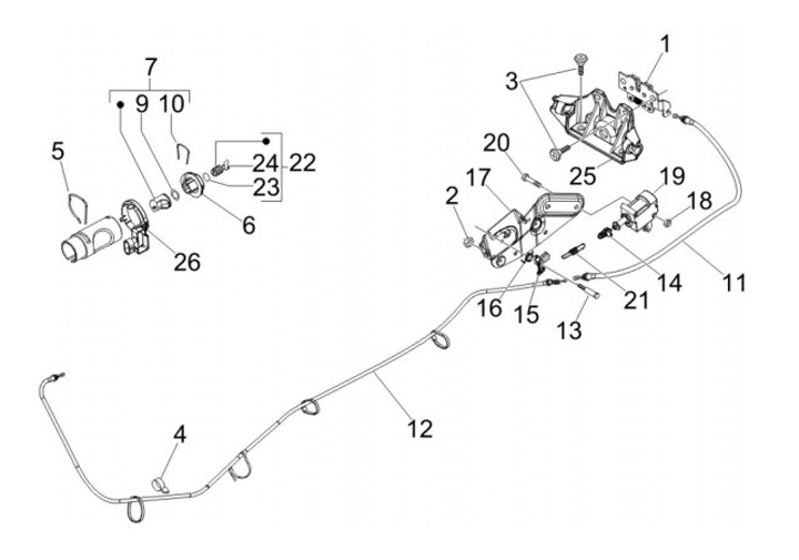 Cable (short) for seat lock -PIAGGIO- Vespa GT 250 (ZAPM45102), Vespa GT L 125 (ZAPM31100, ZAPM31101), Vespa GT L 200 (ZAPM31200), Vespa GTS 125 (ZAPM31300, ZAPMA3100, ZAPMA3200, ZAPMA3700), Vespa GTS 150 (ZAPMA3200, ZAPMA3100), Vespa GTS 250 (ZAPM45100,