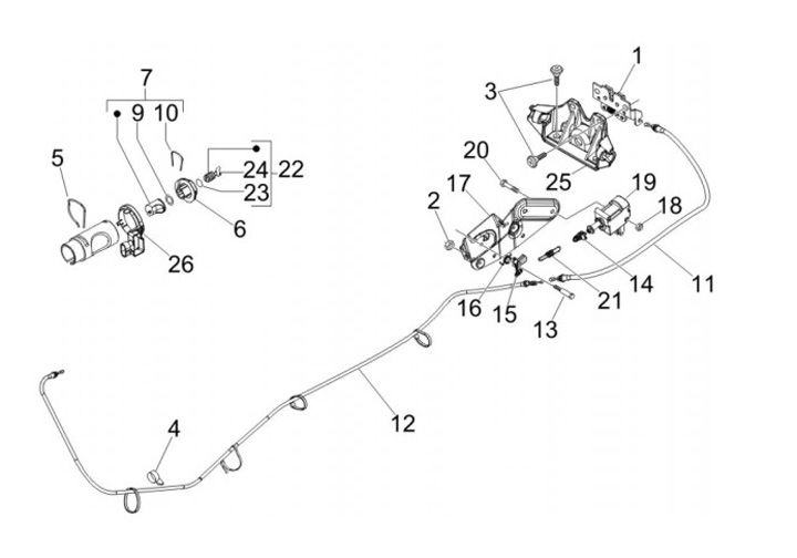 Cable (short) for seat lock -PIAGGIO- Vespa GT 250 (ZAPM45102), Vespa GT L 125 (ZAPM31100, ZAPM31101), Vespa GT L 200 (ZAPM31200), Vespa GTS 125 (ZAPM31300, ZAPMA3100, ZAPMA3200, ZAPMA3700), Vespa GTS 150 (ZAPMA3200, ZAPMA3100), Vespa GTS 250 (ZAPM45100,