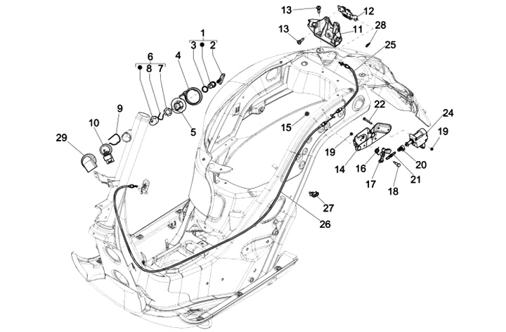 On-Off lock body -PIAGGIO- Vespa GT 250 (ZAPM45102), Vespa GT L 125 (ZAPM31100, ZAPM31101), Vespa GT L 200 (ZAPM31200), Vespa GTS 125 (ZAPM31300), Vespa GTS 250 (ZAPM45100, ZAPM45101), Vespa GTS 300 (ZAPM45200, ZAPM45202), Vespa GTS Super 125 (ZAPM45300,
