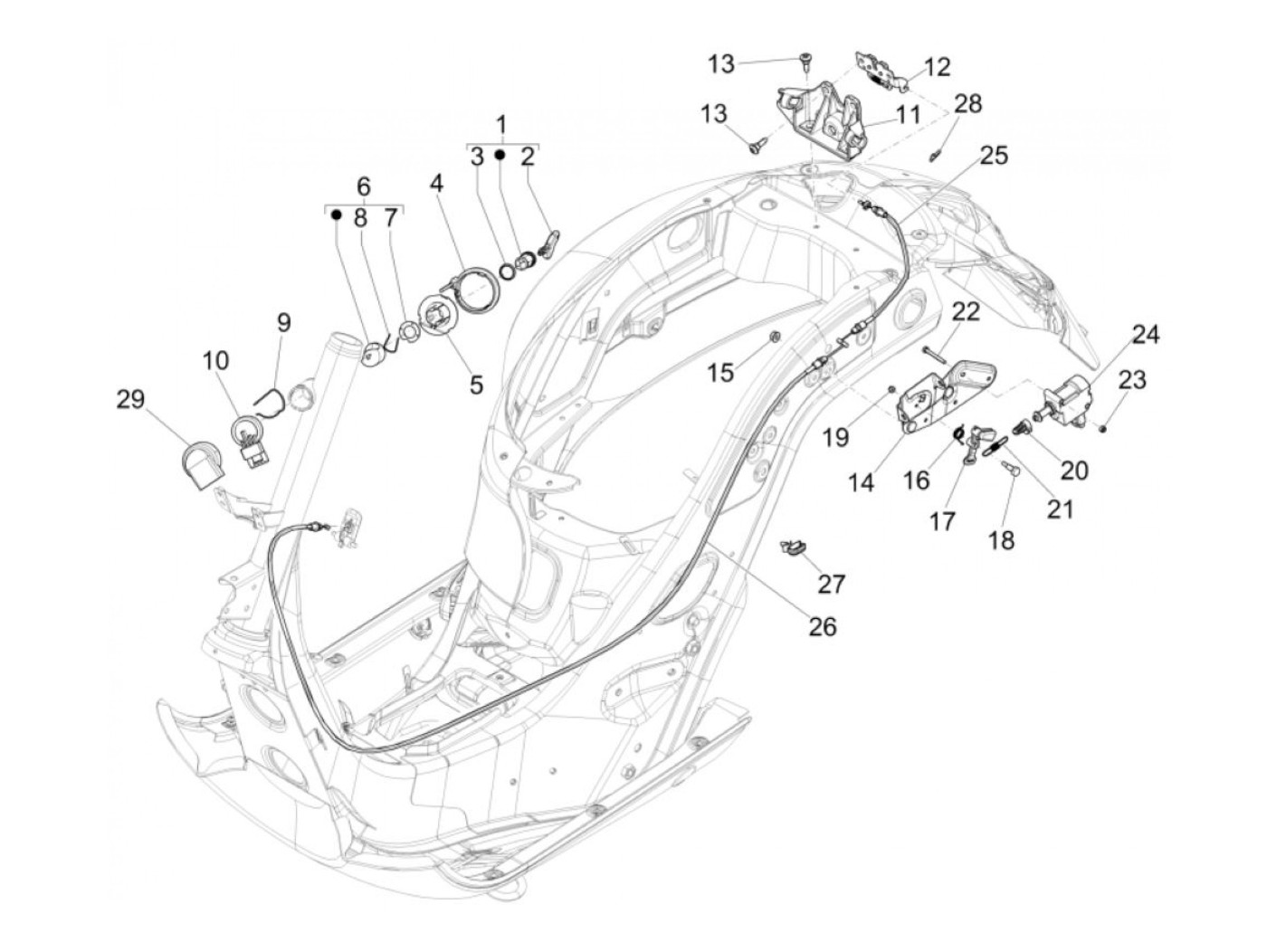 On-Off lock body -PIAGGIO- Vespa GT 250 (ZAPM45102), Vespa GT L 125 (ZAPM31100, ZAPM31101), Vespa GT L 200 (ZAPM31200), Vespa GTS 125 (ZAPM31300), Vespa GTS 250 (ZAPM45100, ZAPM45101), Vespa GTS 300 (ZAPM45200, ZAPM45202), Vespa GTS Super 125 (ZAPM45300,