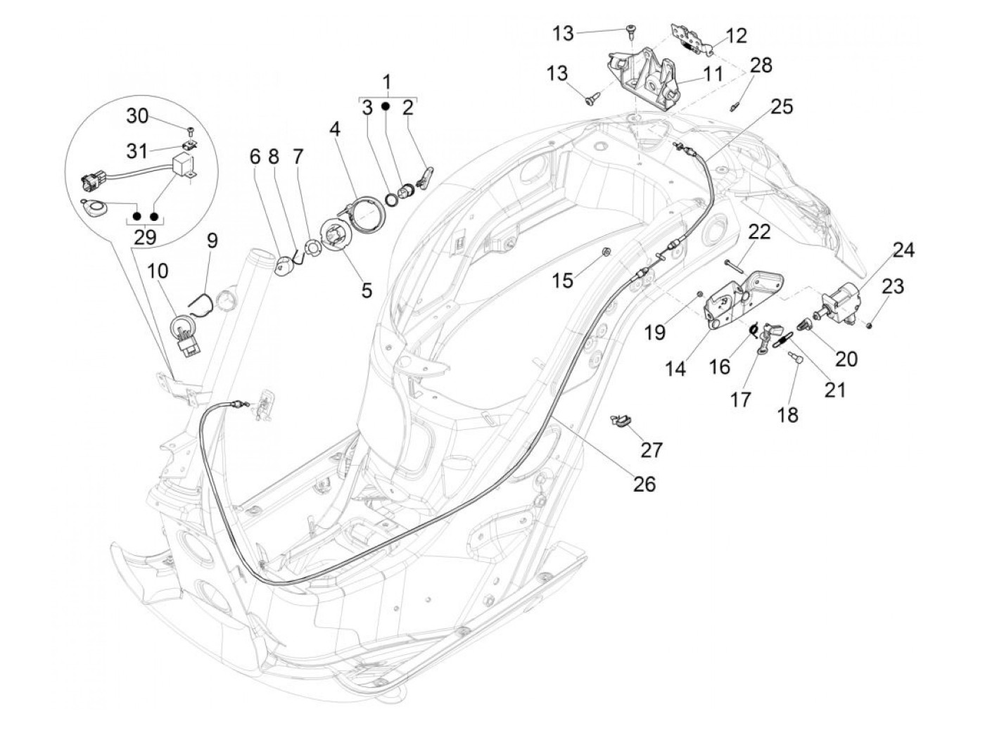 Joint for seat release (electric) -PIAGGIO- Vespa GT 250 (ZAPM45102), Vespa GT L 125 (ZAPM31100, ZAPM31101), Vespa GT L 200 (ZAPM31200), Vespa GTS 125 (ZAPM31300, ZAPMA3100, ZAPMA3200, ZAPMA3700), Vespa GTS 150 (ZAPMA3200, ZAPMA3100), Vespa GTS 250 (ZAPM4