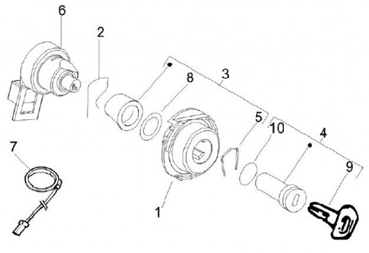 Ignition switch -PIAGGIO- Gilera ICE, Runner50-200, Piaggio Fly, Hexagon GT-GTX, Hexagon LX-LXT, Liberty, NRG Power, Skipper, X7, X9, Zip (since 2000), Vespa ET2, ET4, LX, LXV, S