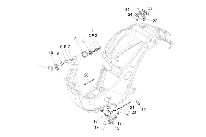 Ignition switch grommet -PIAGGIO- Vespa GT 250 (ZAPM45102), Vespa GT L 125 (ZAPM31101), Vespa GTS 125 (ZAPM31300), Vespa GTS 250 (ZAPM45100, ZAPM45101), Vespa GTS 300 (ZAPM45200, ZAPM45202), Vespa GTS Super 125 (ZAPM45300, ZAPM45301), Vespa GTS Super 300