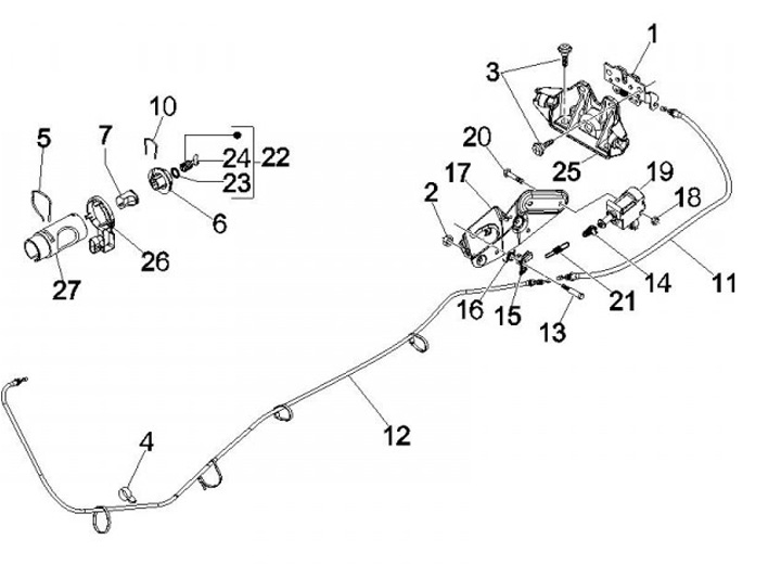 Cable (short) for seat lock -PIAGGIO- Vespa GT 250 (ZAPM45102), Vespa GT L 125 (ZAPM31100, ZAPM31101), Vespa GT L 200 (ZAPM31200), Vespa GTS 125 (ZAPM31300, ZAPMA3100, ZAPMA3200, ZAPMA3700), Vespa GTS 150 (ZAPMA3200, ZAPMA3100), Vespa GTS 250 (ZAPM45100,