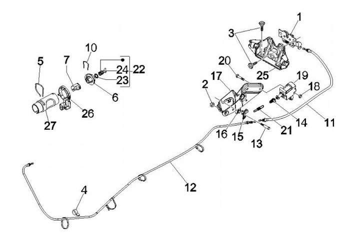 Cable (short) for seat lock -PIAGGIO- Vespa GT 250 (ZAPM45102), Vespa GT L 125 (ZAPM31100, ZAPM31101), Vespa GT L 200 (ZAPM31200), Vespa GTS 125 (ZAPM31300, ZAPMA3100, ZAPMA3200, ZAPMA3700), Vespa GTS 150 (ZAPMA3200, ZAPMA3100), Vespa GTS 250 (ZAPM45100,