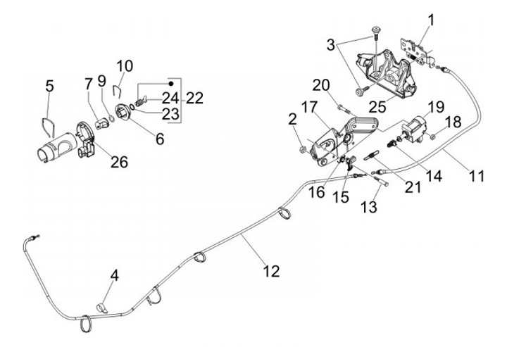 On-Off lock body -PIAGGIO- Vespa GT 250 (ZAPM45102), Vespa GT L 125 (ZAPM31100, ZAPM31101), Vespa GT L 200 (ZAPM31200), Vespa GTS 125 (ZAPM31300), Vespa GTS 250 (ZAPM45100, ZAPM45101), Vespa GTS 300 (ZAPM45200, ZAPM45202), Vespa GTS Super 125 (ZAPM45300,