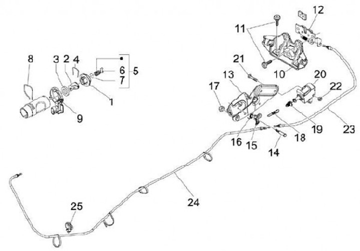 Cable (short) for seat lock -PIAGGIO- Vespa GT 250 (ZAPM45102), Vespa GT L 125 (ZAPM31100, ZAPM31101), Vespa GT L 200 (ZAPM31200), Vespa GTS 125 (ZAPM31300, ZAPMA3100, ZAPMA3200, ZAPMA3700), Vespa GTS 150 (ZAPMA3200, ZAPMA3100), Vespa GTS 250 (ZAPM45100,